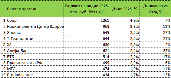 Сильнее всех нарастили бюджеты «Альфа-Банк», «Яндекс» и «Т-Технологии»: на 33%, 27% и 21% соответственно. Одновременно ряд крупных игроков снижает активность: ВТБ сократил размещения на 17%, Национальный Центр Здоровья — на 11%, Prodвижение — на 13%.