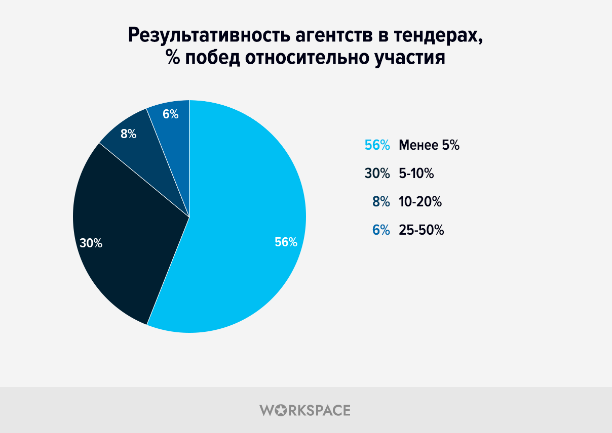 Количество приглашенных в тендеры зачастую переваливает за десяток, а иногда и 2−3 десятка, но формат предусматривает только одного победителя. Нынешнее исследование дает представление о том, какая результативность свойственна агентствам.