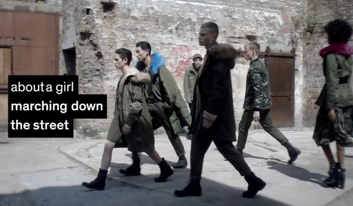 "Это кино о моде", - говорится в начале каждого ролика. В первой рекламе сюжет сконцентрирован на друзьях, которые "ничего не делают" на крыше и "вообще-то не знают друг друга", во второй - на компании, торжественно идущей по улице и "не знает, куда идет". В третьем черно-белом ролике большинство моделей сидят на диване и слушают игру на барабанах, представляя, "как круто они сейчас выглядят".