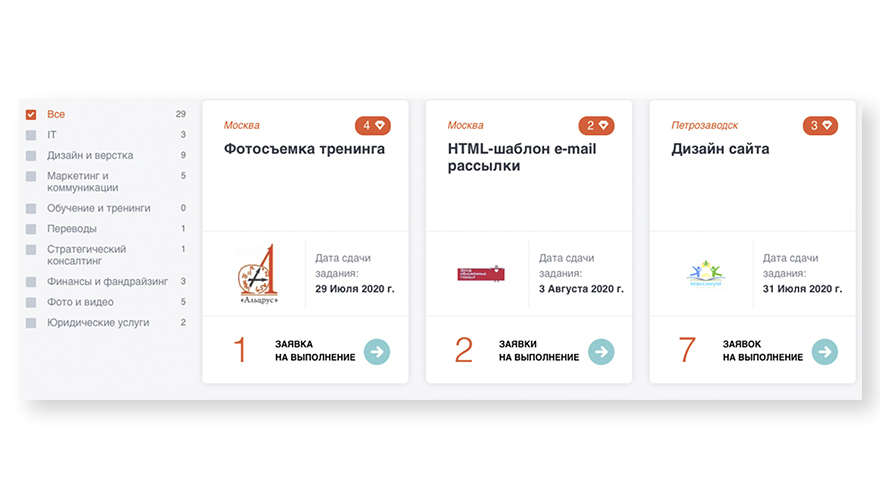 Второй вариант — регистрация на платформах интеллектуального волонтерства, таких как ProCharity и todogood. Это площадки, где фонды размещают свои задания, в том числе по маркетингу, диджиталу и PR, и ищут исполнителей. Задачи бывают разного масштаба и сложности: одним фондам нужны баннеры для фандрайзинговых кампаний, а другим — PR-стратегия на год вперед.