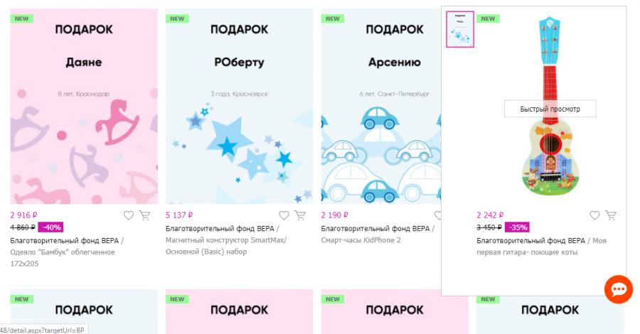 И, наконец, третий вариант — привлечение фондов к проектам текущих клиентов агентства. Российские коммерческие организации все активнее начинают участвовать в благотворительности. Например, Wildberries совместно с фондом «Вера» несколько раз составляла перед Новым годом списки подарков, которые подопечные этой НКО хотели бы получить на праздник. Пользователи Wildberries могли выбрать подарок из списка и оплатить его.