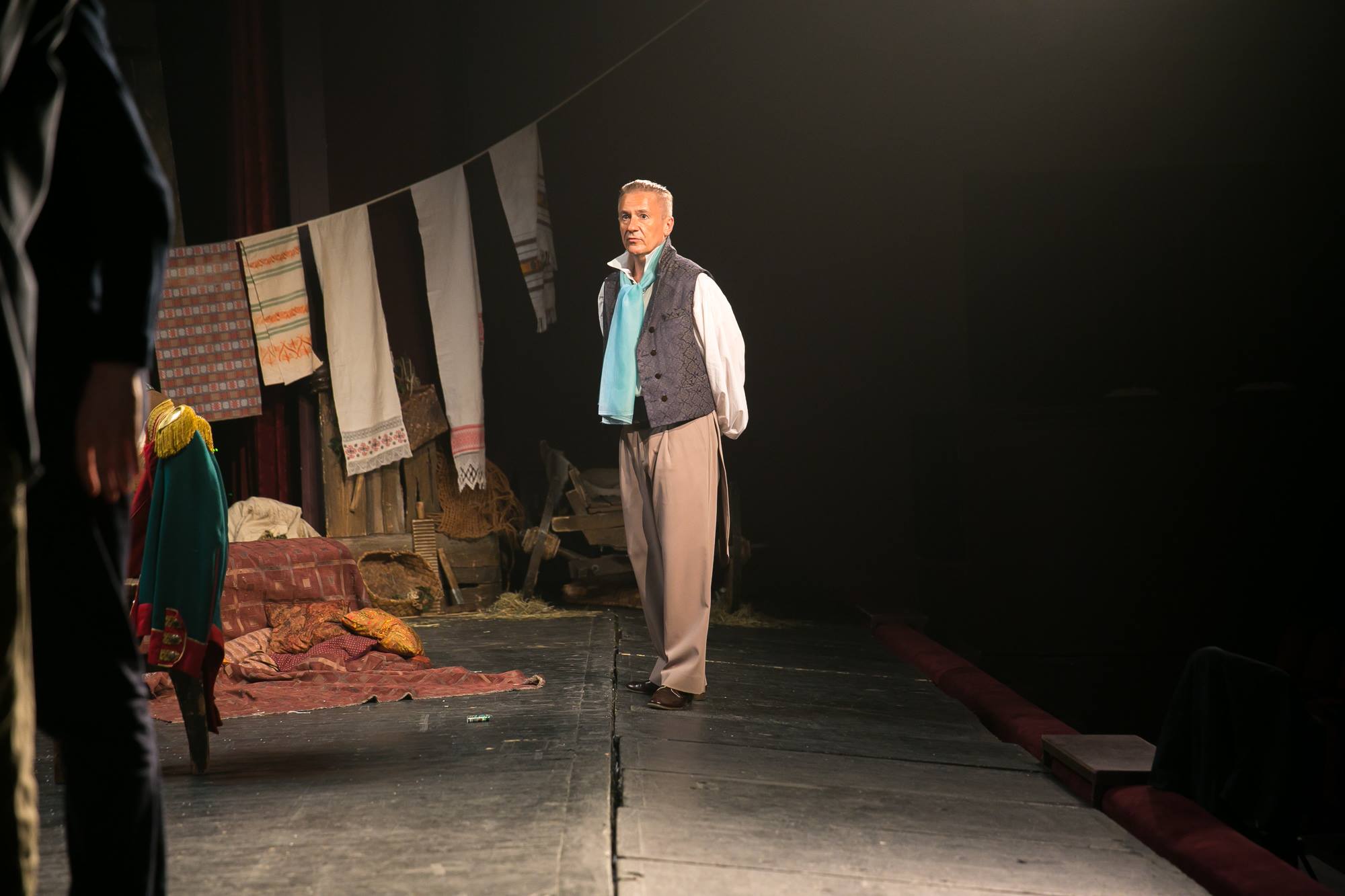 В Театре имени Вл. Маяковского зрителей пригласят на сцену спектакля «Кавказский меловой круг» по культовой пьесе Бертольта Брехта, отрывок из которой можно посмотреть от лица Сергея Рубеко (в роли Рассказчика), Юлии Соломатиной (в роли Груше) или Павла Пархоменко (в роли Симона).