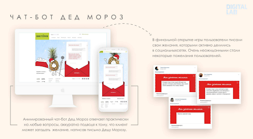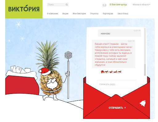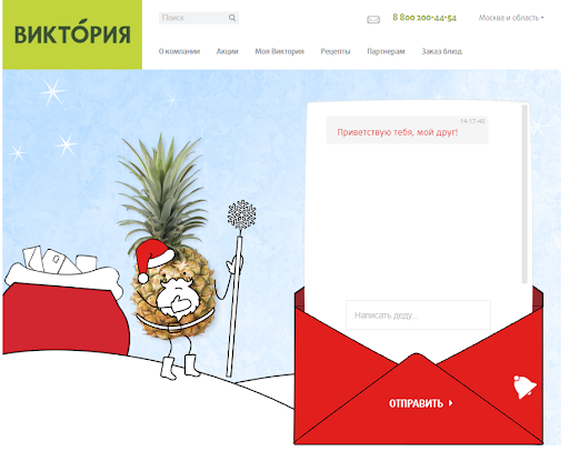 Развивая тему Нового Года для «Виктории», разработчики создали чат со стилизованным Дедом Морозом.