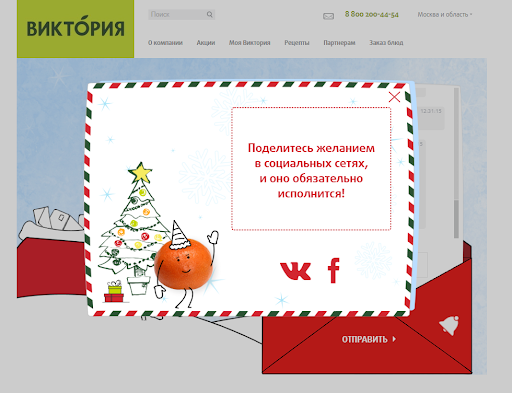 После непродолжительной беседы с Дедом Морозом, скрипт диалога подводил к тому, что сейчас вылетит открытка, внутри которой необходимо написать свое заветное желание и получить подарок от Деда Мороза. Желания, как известно, исполняются лишь у тех, кто разместил его в своей соцсети.