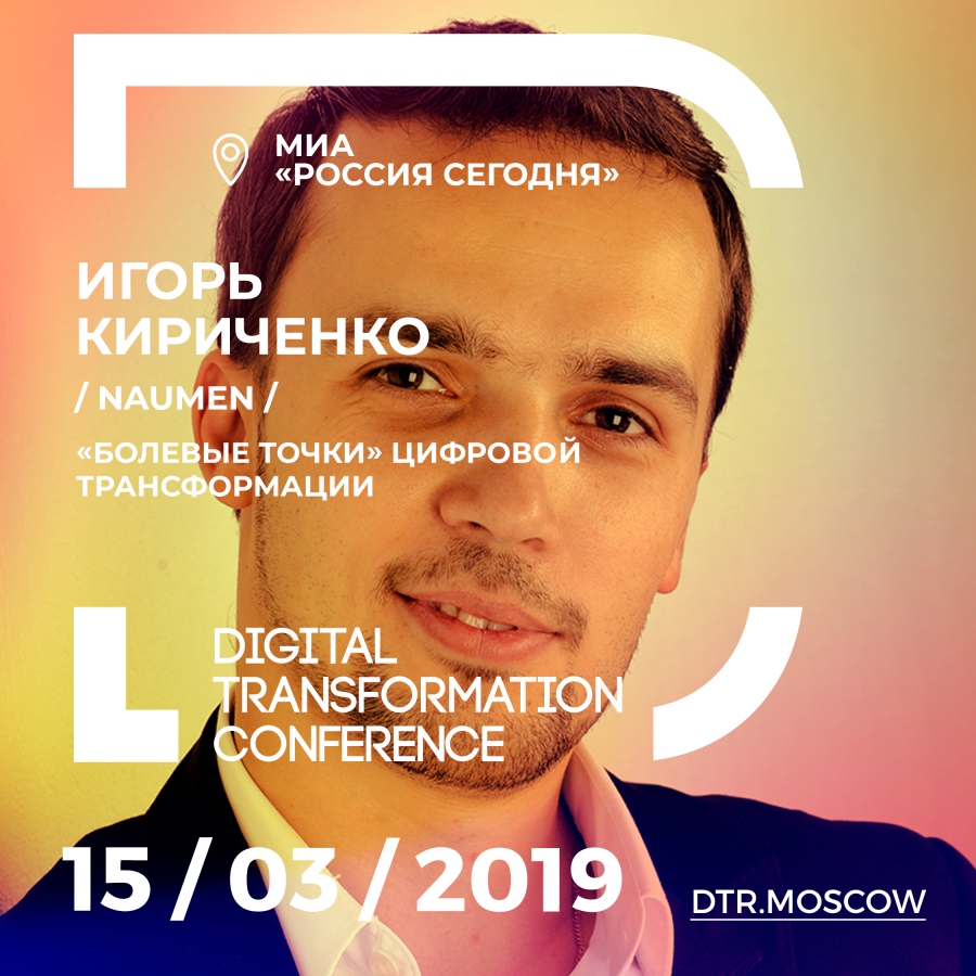 15 марта 2019 года в Москве в третий раз пройдет ежегодная конференция Digital Transformation in Russia. DTR — это свежие кейсы, спикеры-практики, инновационные решения и практические сессии с участием экспертов.