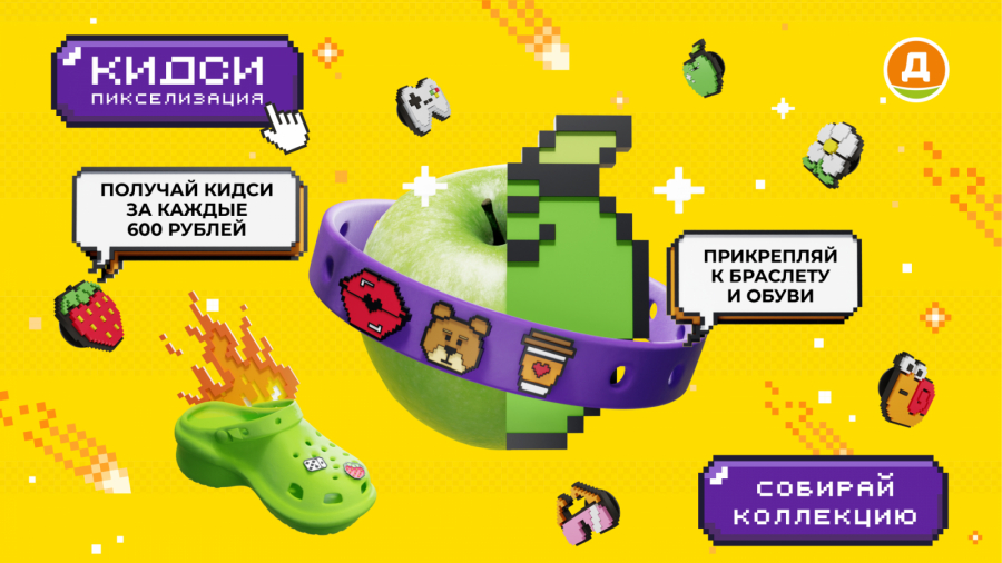 В супермаркетах «Дикси» прошла акция, в которой покупатели за каждые 600 рублей и за покупку товара-участника акции получали на кассе пиксельные игрушки. Кампанию в поддержку акции создали совместно с агентством