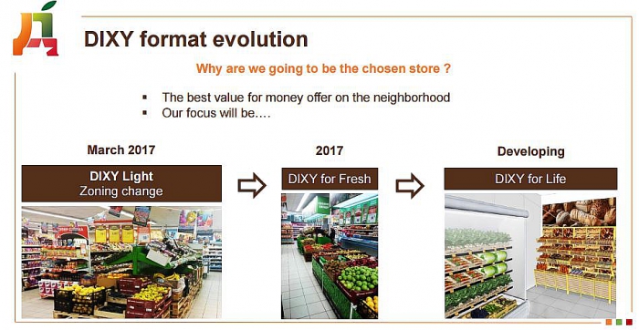 Ритейлер готов работать над ассортиментом, сохранять конкурентные цены и улучшать покупательский опыт. «Дикси» планирует увеличивать долю свежей продукции, менять оформление торговых залов и выкладку товара. Новая концепция уже реализована в 30% магазинов, завершение проекта намечено на первую половину 2017 года.