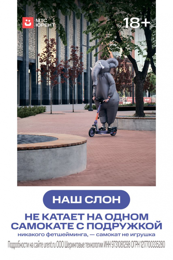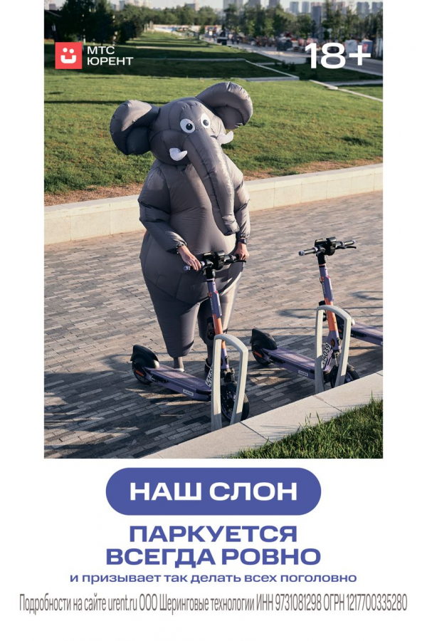 В новой рекламной кампании на улицах Москвы появились люди в костюмах слонов, катающихся на самокатах. Также в городах России разместили наружную рекламу с новыми символами шеринга, объясняя правила безопасности при использовании электросамокатов. Кампания включила известный мем, где людей называют «нашими слонярами», что подчеркивает положительное отношение к клиентам и пользователю сервиса. Подробнее на Sostav.