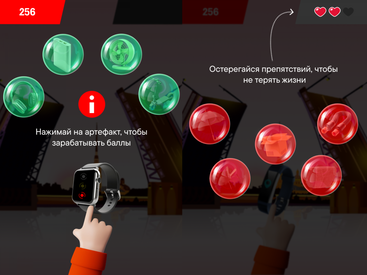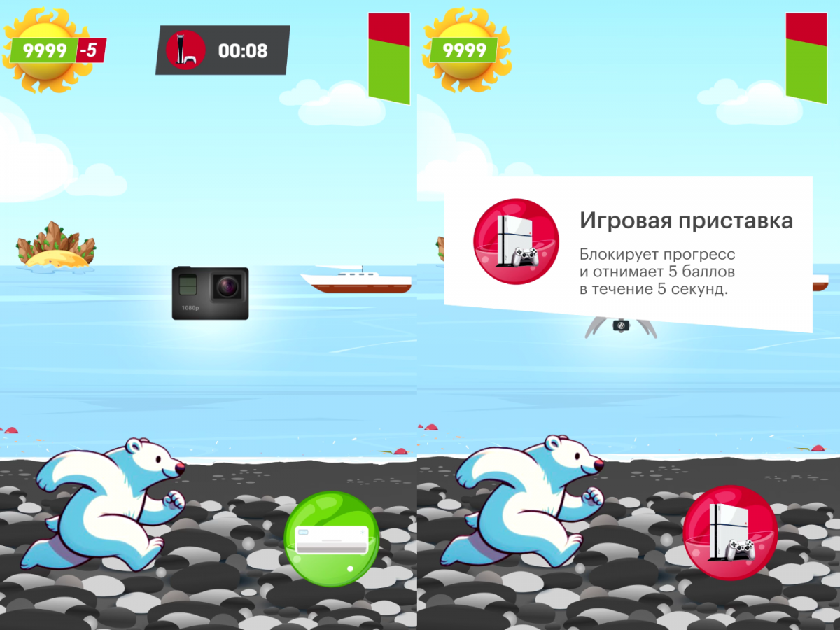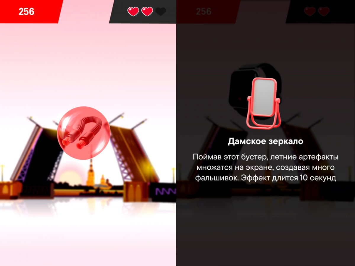 креативной студией SMIT. механики требовали от пользователей быстроты реакции и ловкости. В обеих активациях надо было собирать летние артефакты и бустеры для увеличения очков. За набранные баллы игроки могли получить реальные скидки на покупки в магазинах.