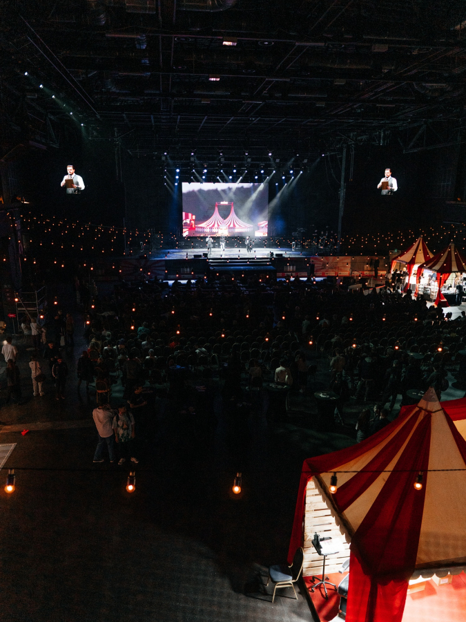 Команда перестроила главную сцену клуба, а затем адаптировала световой сетап зала под выступления спикеров и застройку партнёрских зон. Так как билетная программа фестиваля включала разные категории, зрительный зал организаторы поделили на несколько частей: экспо-зону для партнёрских стендов, основной зрительский партер и VIP-зону перед сценой. Основной зал события вместил несколько крупных партнёрских зон. Каждую из них команда Director's Cut оформила в цирковые шатры-шапито. Спонсоров и партнёров помельче она разместила в групповых партнёрских зонах.