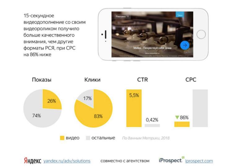 Видеообъявления оплачиваются за клики и размещаются только собственных площадках «Яндекса»: в формате мультиролл внутри видеоконтента (например, в трейлерах на КиноПоиске) и в формате in-page, когда рекламный ролик встроен в страницу сайта.
