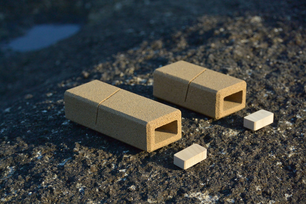 Сама упаковка создана из прессованного песка, а драгоценное содержимое, находящееся внутри, обволакивает мягкий рассыпчатый песок.