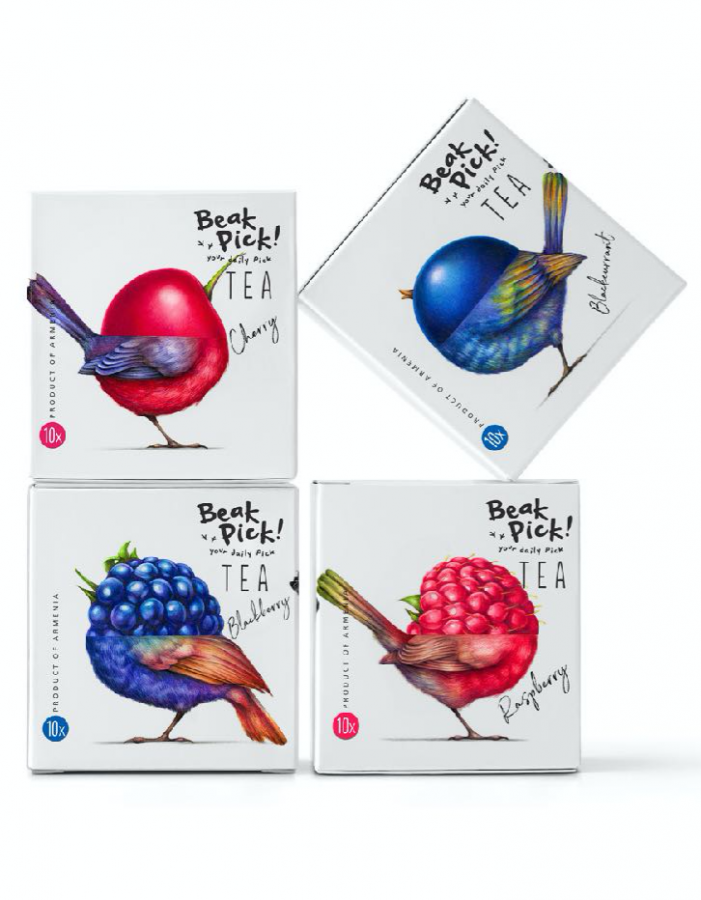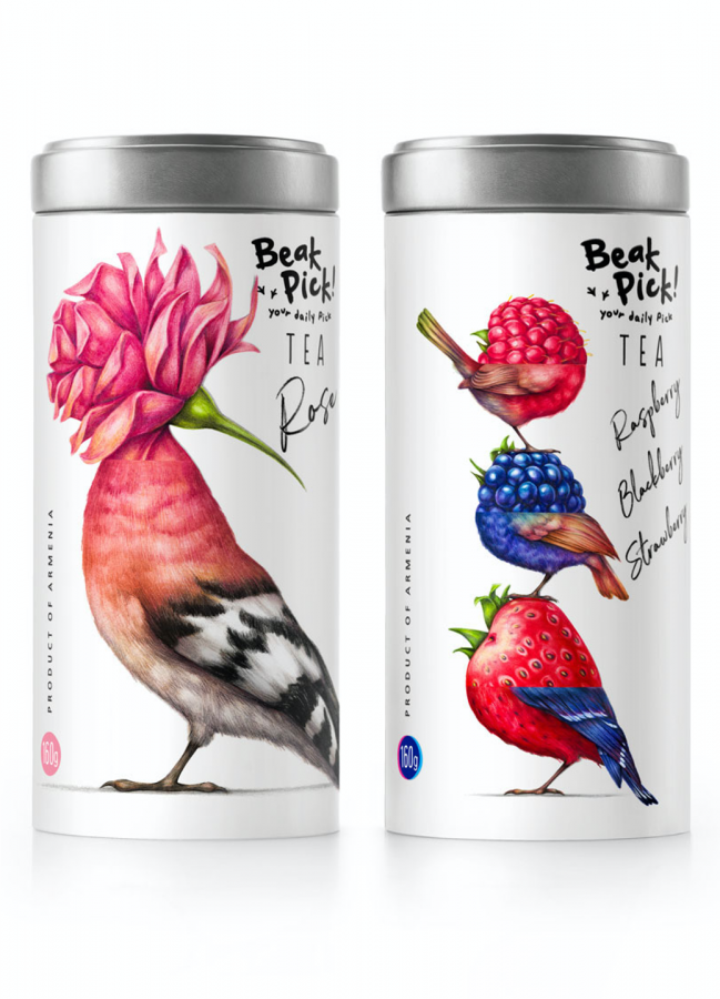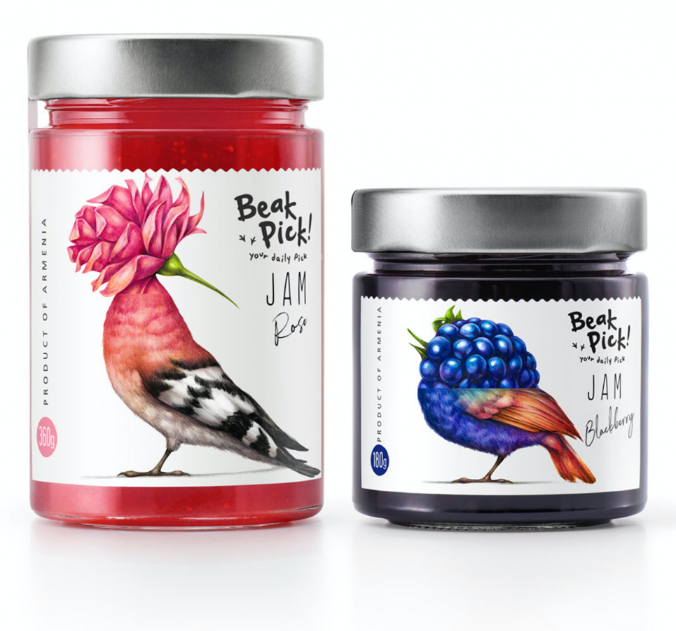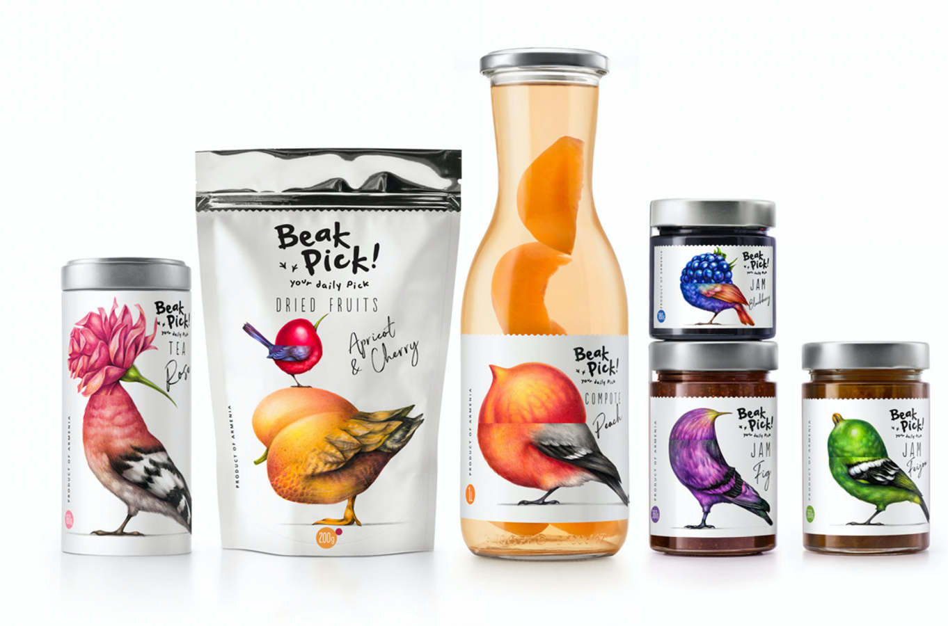 Один из примеров такого подхода — упаковка джемов «Bick Pick». История начинается с мысли: «джем — это удовольствие, которым нужно наслаждаться, а не еда, которую нужно есть». В качестве метафоры выбраны птицы, которые поглощают пищу маленькими порциями. Названием продукта стало слово «клюв» — «Bick Pick», а сходство между эстетикой клюва и формой фруктов-компонентов джема легло в основу иллюстративной серии упаковок.