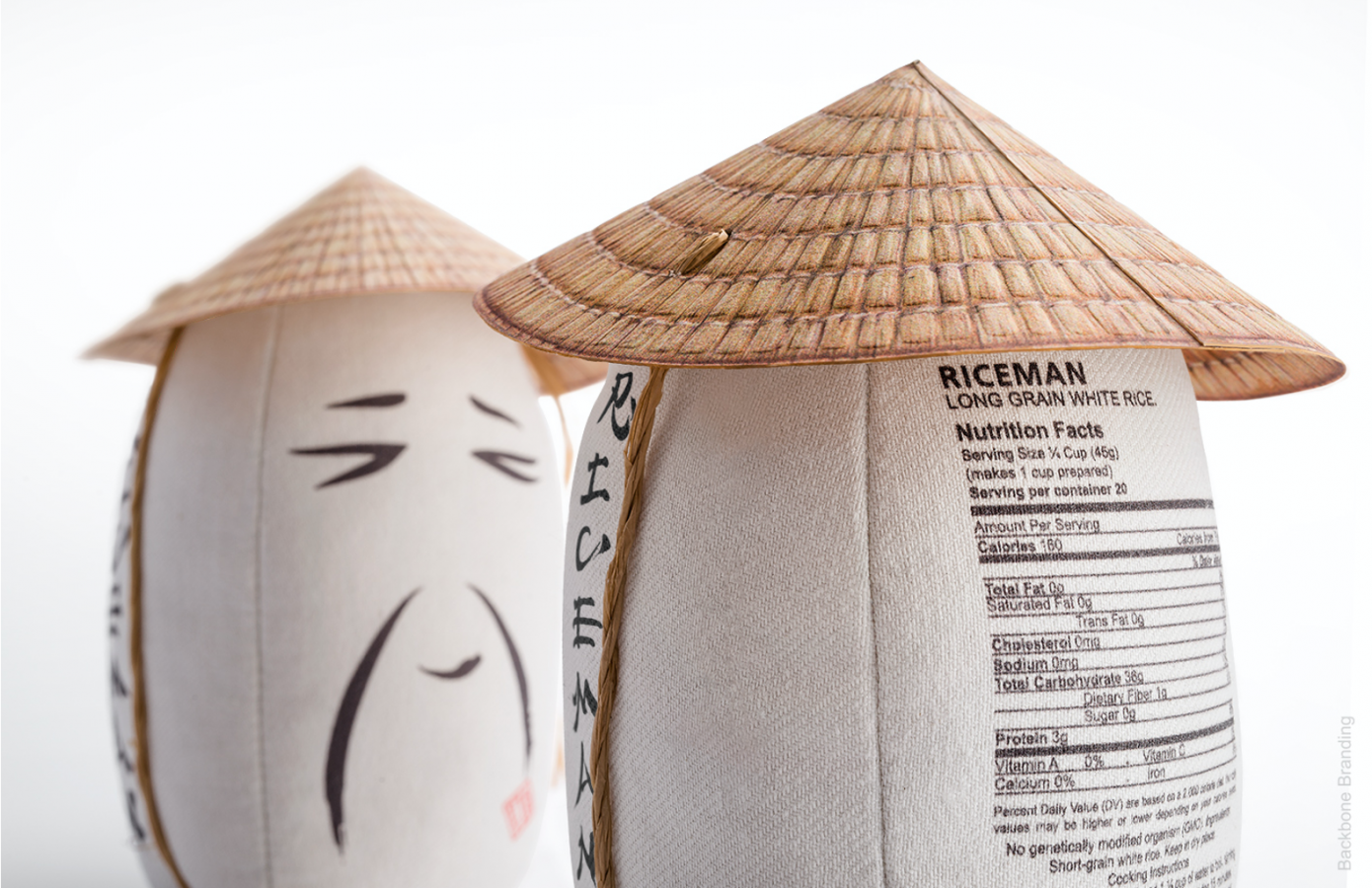 Создатели упаковки для риса RICEMAN персонализировали ее, превратив в компанию обаятельных персонажей, создающих узнаваемый ряд на полке.