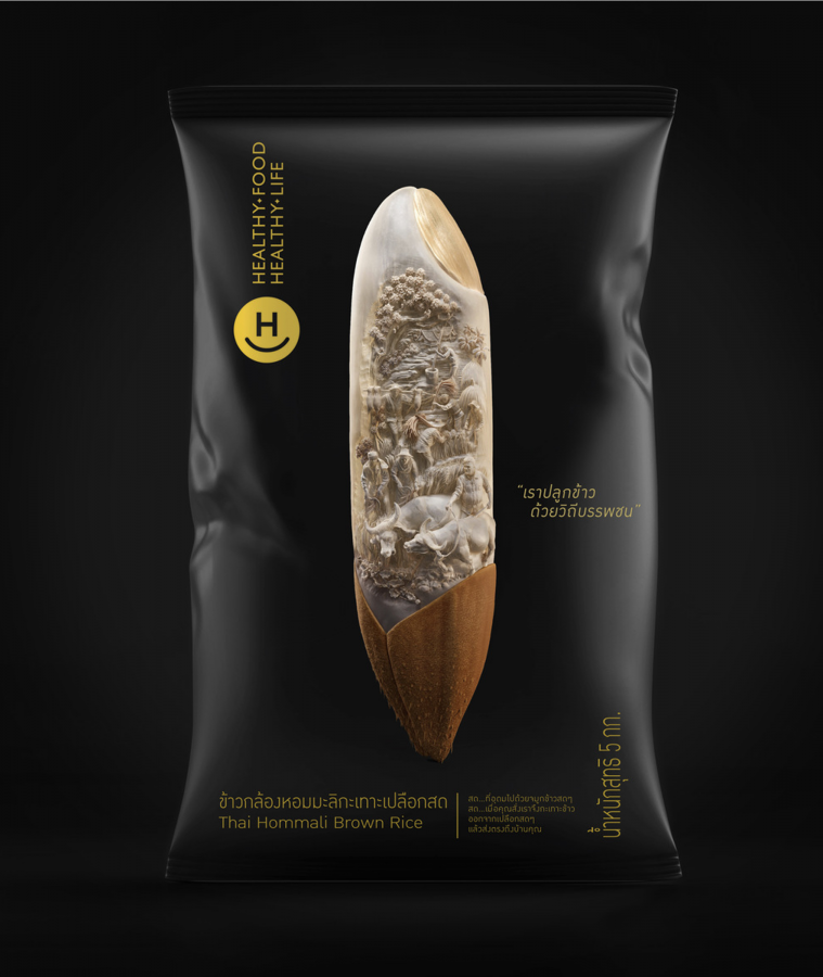 Чтобы донести до потребителя концепцию совершенства обработки каждого семени, тайская марка риса Healthy Food Healthy Life буквально показала все этапы традиционного выращивания риса. Все они были мастерски вырезаны вручную на дереве, что превратило иллюстрацию в произведение искусства.