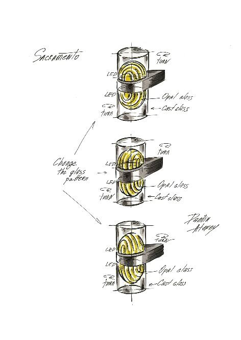 Название коллеции Sacramento переводится с итальянского как «таинство». Лампы содержат две идеи. Первая — иллюзия наличия матового светящегося шара внутри. На самом деле это вырезанная форма из полнотелого стекла и матированная изнутри. Это решение позволяет создать мягкое освещение, закрывая светодиоды, а также делает корпус светильника компактнее.