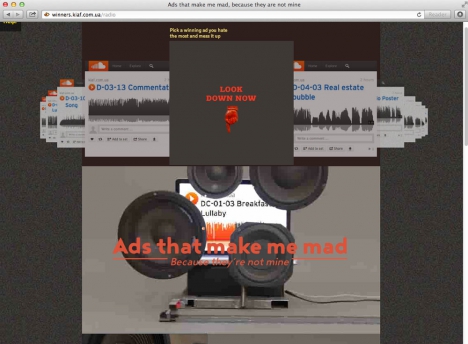 Хотите покромсать гениальный принт? Специальная инсталляция с онлайн стримом поможет разорвать его в клочья. Лучший ТВ-ролик этого года? Смешается с грязью по самые уши, стоит вам только захотеть. Стрим напрямую из курятника, куда можно отправить победивший ролик под прицельный огонь куриного помета. Лучшими примерами дизайна вытирают подмышки, а радиоролики превращают в тошнотворный писк.