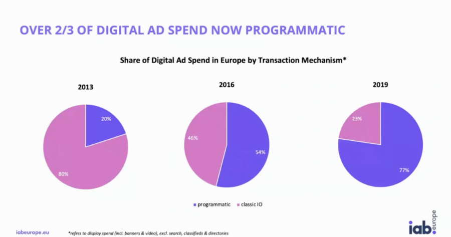 Доля programmatic-закупки растет год от года. По данным IAB Europe, на европейском рынке более 2/3 digital ad spend пришлось на programmatic-рекламу. Росту способствует эффективность данных и возможности для таргетинга.