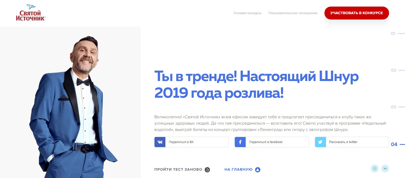 Нас восхищает смелость и готовность клиента реализовывать самые нестандартные идеи. Это лишний раз подчеркивает, что только настоящий лидер не боится экспериментов и не боится шутить над собой. Это относится и к «Святому Источнику» и к Сергею Шнурову.