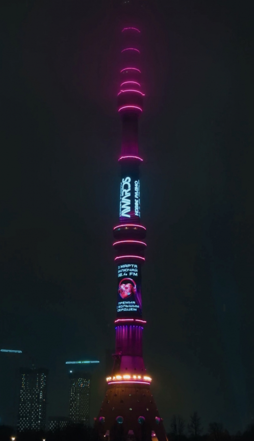 Кроме того, с самого утра фирменными цветами премии засветилась Останкинская телебашня.