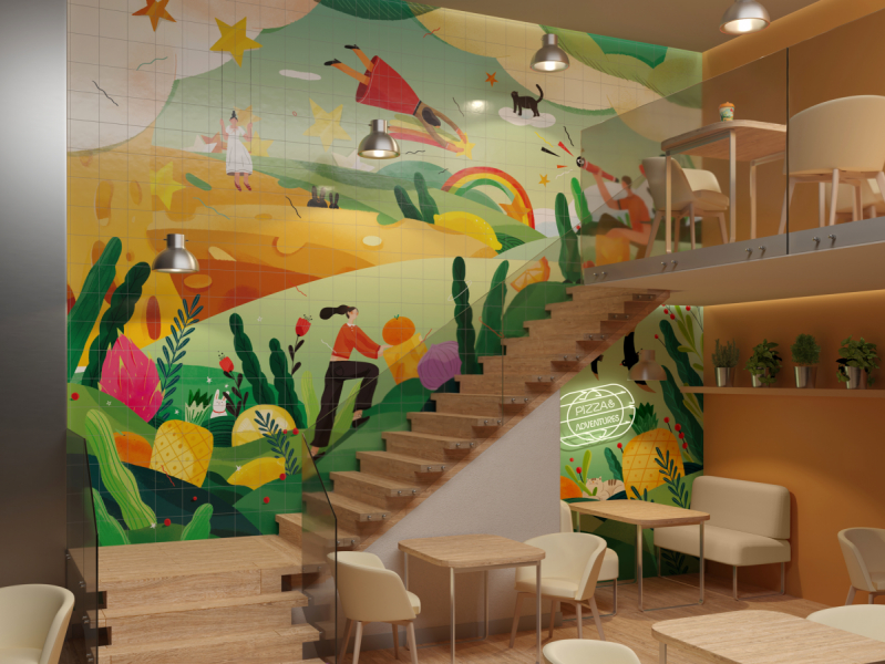 Иллюстратора искали по всему миру, но нашли все-таки в самом Китае — пиццерию украсили рисунки китаянки Хао Хао (郝冉).