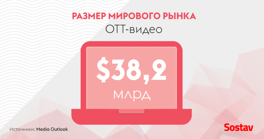 Объем российского рынка ОТТ-видео в 2018 году составил $190 млн. По прогнозам, к 2023 году эта цифра увеличится до $328 млн, а рост сегмента составит 11,5% в год.