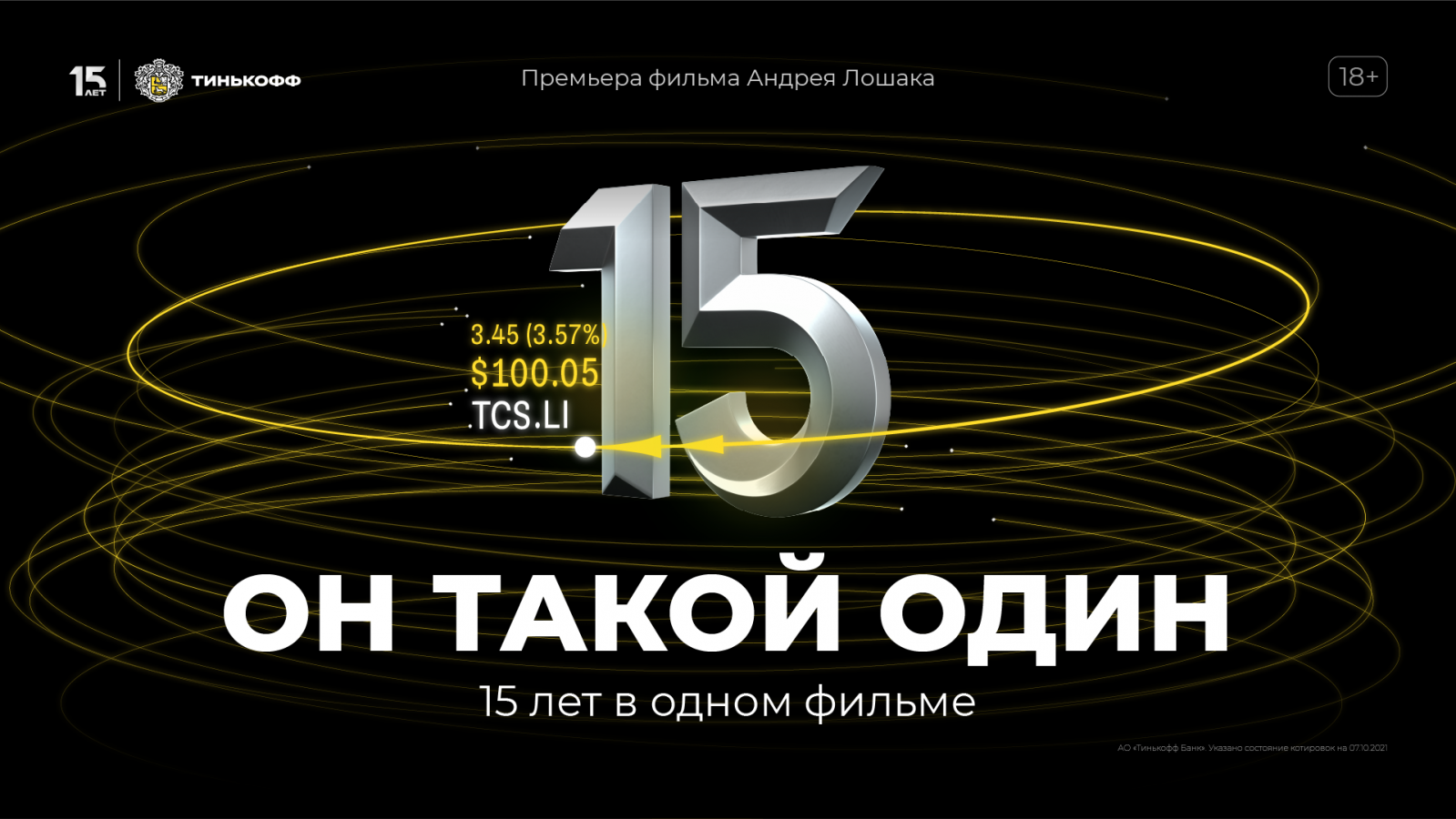 В честь 15-летия мы хотели рассказать нашу историю в формате фильма, ведь появление «Тинькофф» в 2006 году символизирует зарождение финтеха в России и мире. Именно поэтому известный российский журналист и режиссёр Андрей Лошак снял большой документальный фильм о «Тинькофф». Перед Андреем стояла очень непростая задача для документалиста — передать ощущение времени и провести зрителя по истории «Тинькофф» через жизнь и состояние дел в стране. Десятки часов интервью с командой, беседы с клиентами и экспертами по всей стране — всё это, конечно, нельзя целиком включить в фильм. Хотя, возможно, к 20-летию стоит задуматься о сериале.