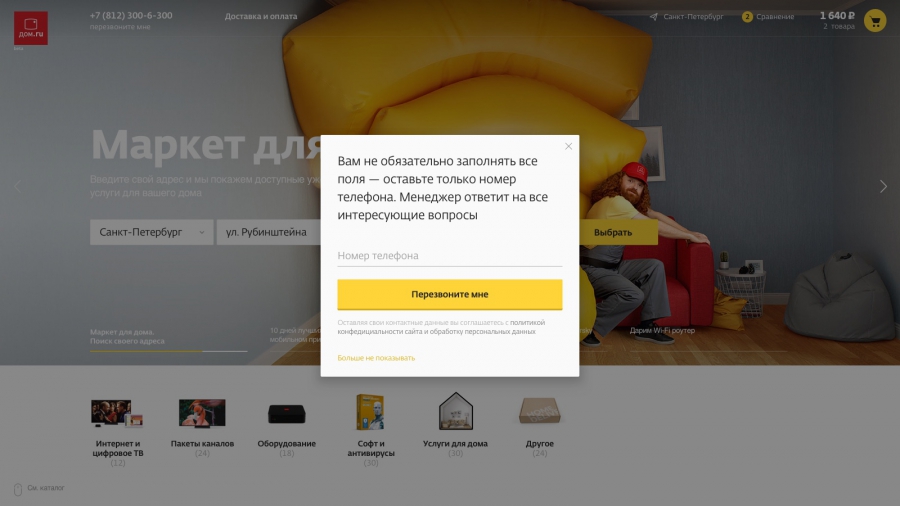 Услуги и продукты «Дом.ru» теперь собраны в формате e-commerce. На новой площадке появился удобный каталог, который будет отличаться понятной навигацией и легким управлением личного кабинета, обещает оператор.