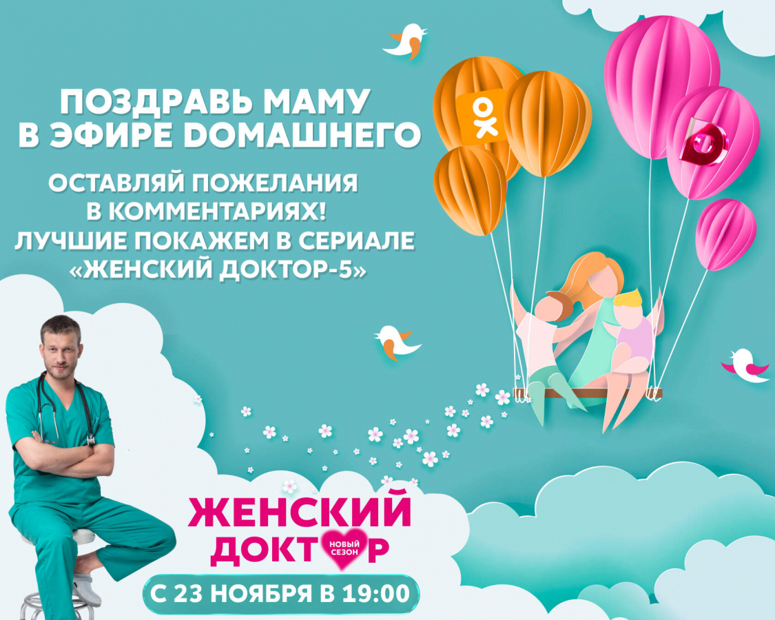В конце ноября на «Dомашнем» стартовал пятый сезон сериала «Женский доктор», в каждой серии которого одна из его героинь становится мамой. Как увеличить количество подписчиков в группе телеканала в «Одноклассниках» и привлечь зрителей к просмотру новой части истории о буднях врачей с помощью одного из главных праздников каждой женщины, рассказывает команда