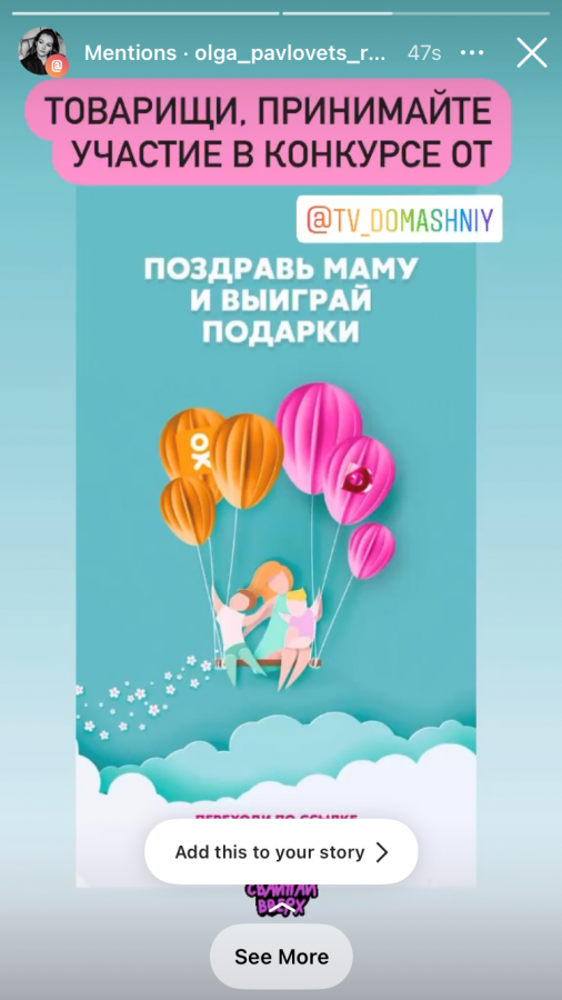Лучшие медиапроекты получаются, когда партнер учитывает специфику аудитории соцсети, использует популярные темы у аудитории по всей стране и при этом задействует как уже зарекомендовавшие себя, так и новые механики. Коллеги из телеканала «Dомашний» попали в тренд празднования Дня матери, который за последние годы стал одним из любимых праздников наших пользователей. Таким образом, мы добились отличных результатов вовлеченности аудитории через правильный микс классического конкурса в комментариях и красочных рамок на аватар. «Dомашний» — один из тех телеканалов, которые системно работает с пользователями «ОК»: проводят различные проекты, адаптируют контент под интересы людей в соцсети. Благодаря этому его лояльная аудитория в «Одноклассниках» постоянно растет.