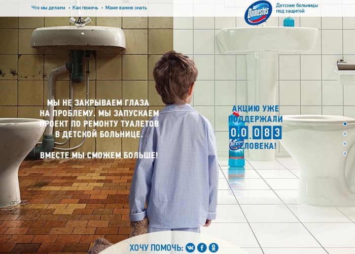 Все последние дни интернет-пользователи обсуждали и резко осуждали социальную акцию, в рамках которой бренд Domestos обещал начать ремонт уборных в госпиталях в случае, если со страницы проекта «Детские больницы под защитой» будет сделано 30 тыс репостов. «Вместе мы сможем больше!» - с таким слоганом стартовала социальная акция.
