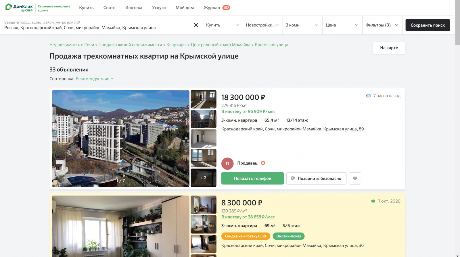 «ДомКлик» — удобный и безопасный сервис от «Сбера» для продажи, покупки, аренды жилой и коммерческой недвижимости и оформления ипотеки. Раньше «ДомКлик» позиционировался как сервис, который помогает взять ипотеку от Сбербанка. Сейчас он работает как масштабный классифайд с предложениями жилой и коммерческой недвижимости по всей России.