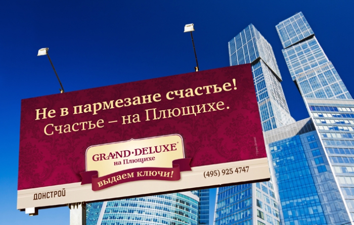 Компания Донстрой решила использовать тему продуктовых антисанкций в рекламе своего жилого дома «GRAND DELUXE на Плющихе». Наружная реклама, разработанная агентством Paradigma, призывает радоваться жизни без хамона и пармезана, если есть квартира в доме класса люкс.