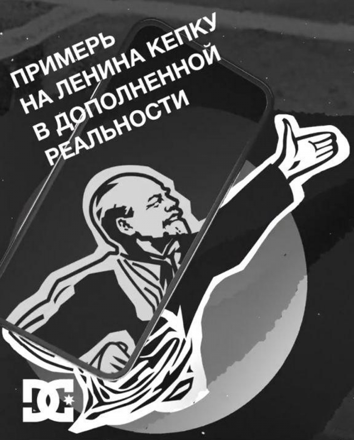 Технология дополненной реальности (AR) позволила обновить узнаваемый образ Ильича, заменив его главный атрибут — рабочую кепку — на скейтерскую от DC Shoes.