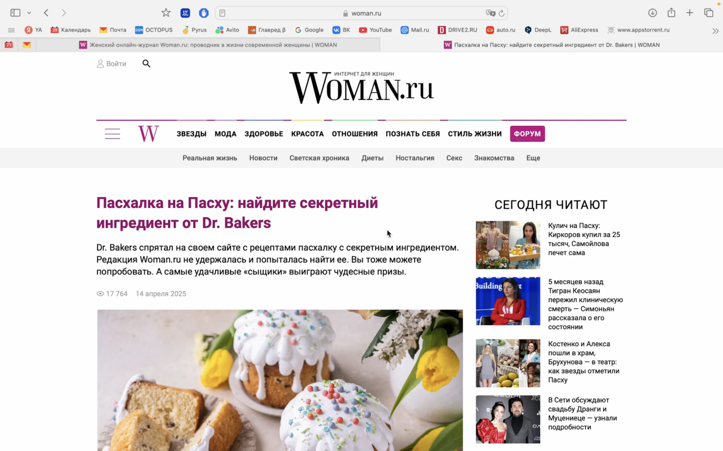 Dr. Bakers вдохновили более трехсот тысяч человек изучать пасхальные рецепты. Даже ведущее женское медиаиздание — Woman.Ru — пыталось найти пасхалку.