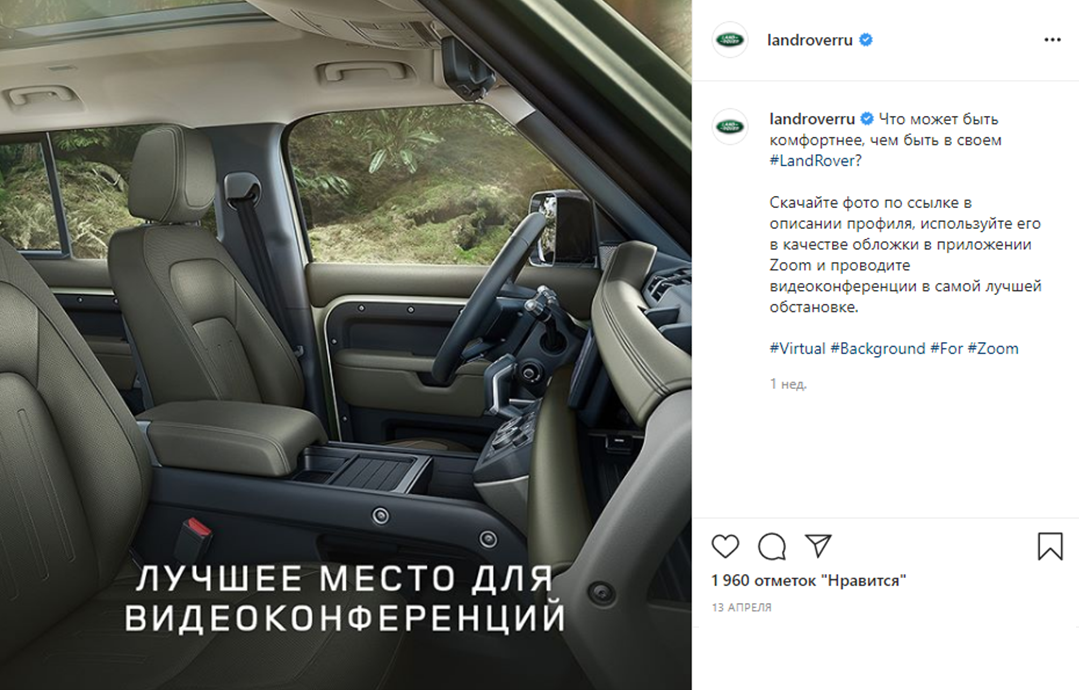 Land Rover предложил пользователям скачать обои для Zoom-конференций c изображением салона автомобиля.