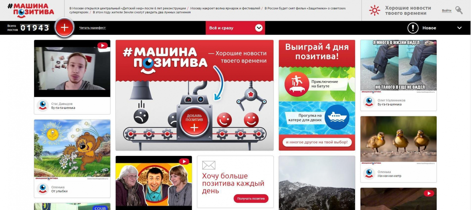 Одним кликом на сайте пользователь мог создать позитивный импульс для случайного незнакомца, который получал внезапный подарок от KIA прямо на улице. При этом к подарку прилагалась визитка с указанием контактов отправителя. Люди могли найти друг друга на сайте «Машина позитива» или в соцсетях, поблагодарить или даже подружиться.