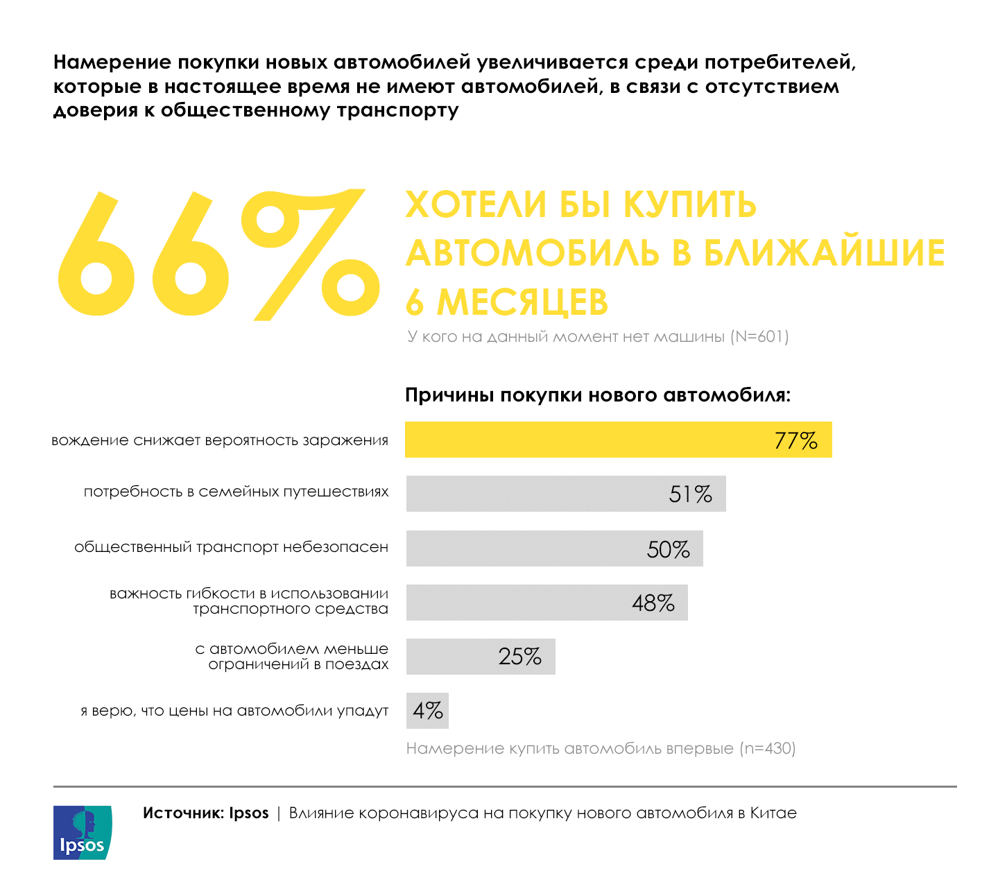 Автомобильным брендам однозначно стоит активно встраиваться в обновленную реальность потребления и генерировать дополнительный контент. Пандемия закончится, а потребность в личном транспорте останется. Согласно исследованиям, после эпидемии в Китае намерение купить личный автомобиль только растет. Люди начали больше задумываться о своем здоровье и безопасности. 77% опрошенных основной причиной желания купить автомобиль видят снижение вероятности заражения при передвижении.