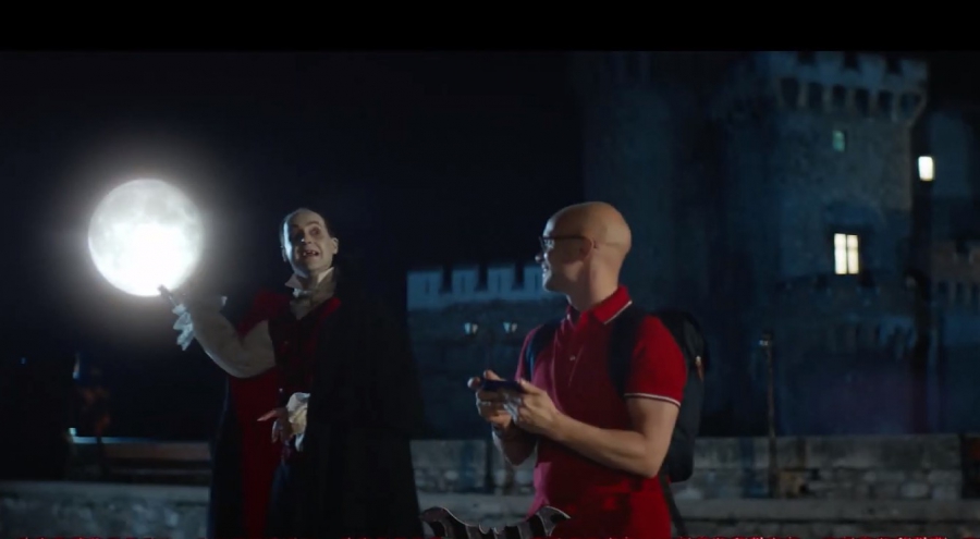 По сценарию ролика, Хрусталев попадает в готический замок, где встречает Дракулу и развлекает его, фотографируя на телефон. Так показано, что телефон хорошо снимает в ночное время.