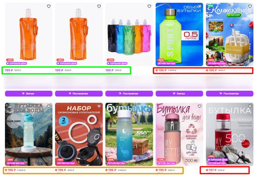 Кому подходит прием: продавцам недорогих товаров и всем, кто хочет выигрывать конкурентную борьбу за счет микроразницы в цене. Когда дримскроллер сортирует по цене, он выискивает, что бы такое купить, чтобы было не жалко. В этот момент главное — быть первым, кого заметят.