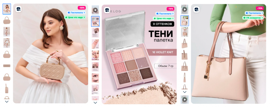 Кому подходит прием: продавцам в популярных категориях дримскроллинга — одежда, товары для дома, косметика, милые безделушки. Речь идет о том, чтобы сделать карточку заметной именно в каталоге — там, где пользователь видит десятки товаров за несколько секунд.