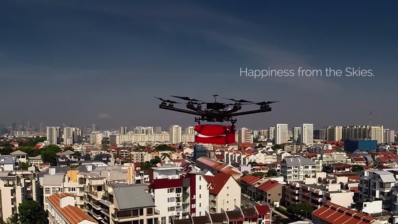 Фотографии людей вместе с банками Coca-Cola отправили прямо на строящиеся небоскребы. Доставкой занимались летательные аппараты - дроны.