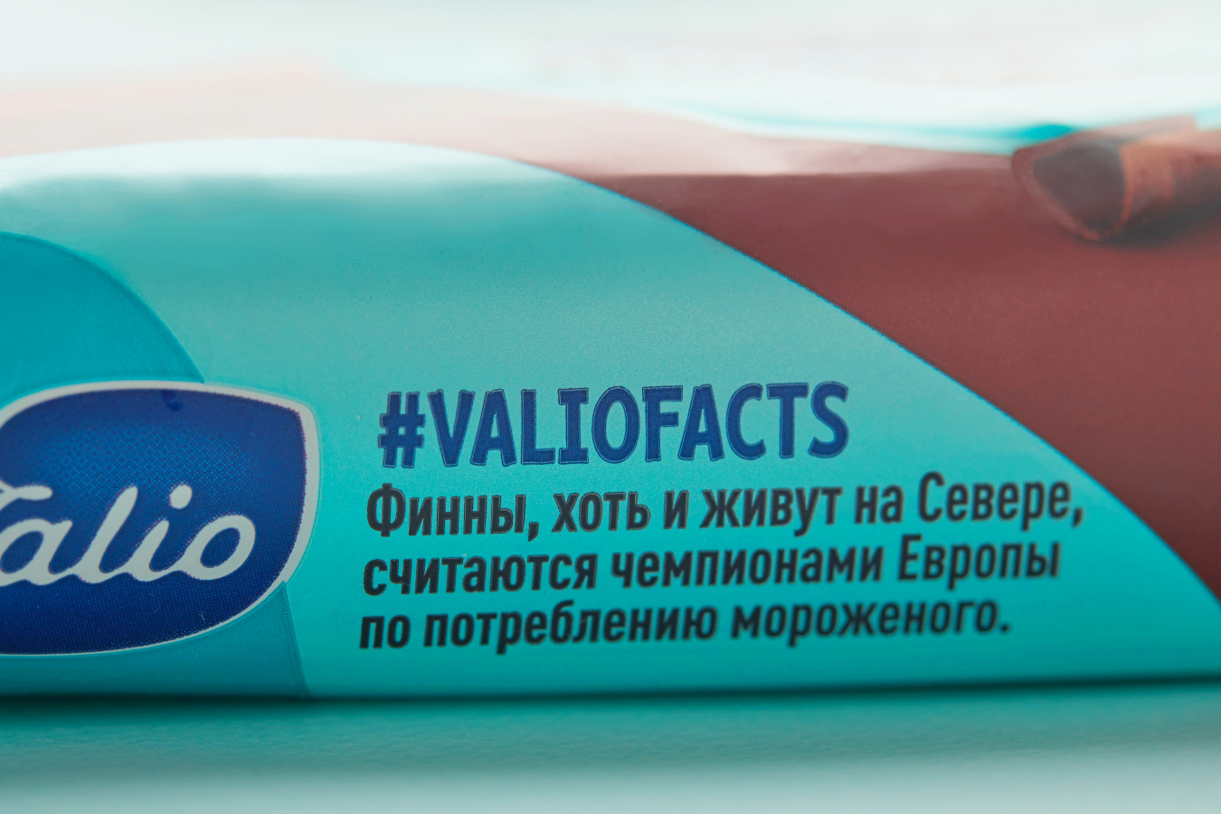 Кроме того, на упаковках мы разместили интересные факты о мороженом, связанные с «корнями» брендом Valio. Например, на шоколадном пломбире можно найти информацию о том, что финны считаются чемпионами по потреблению мороженого.