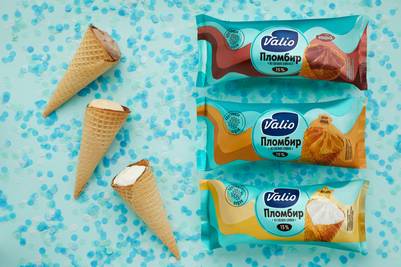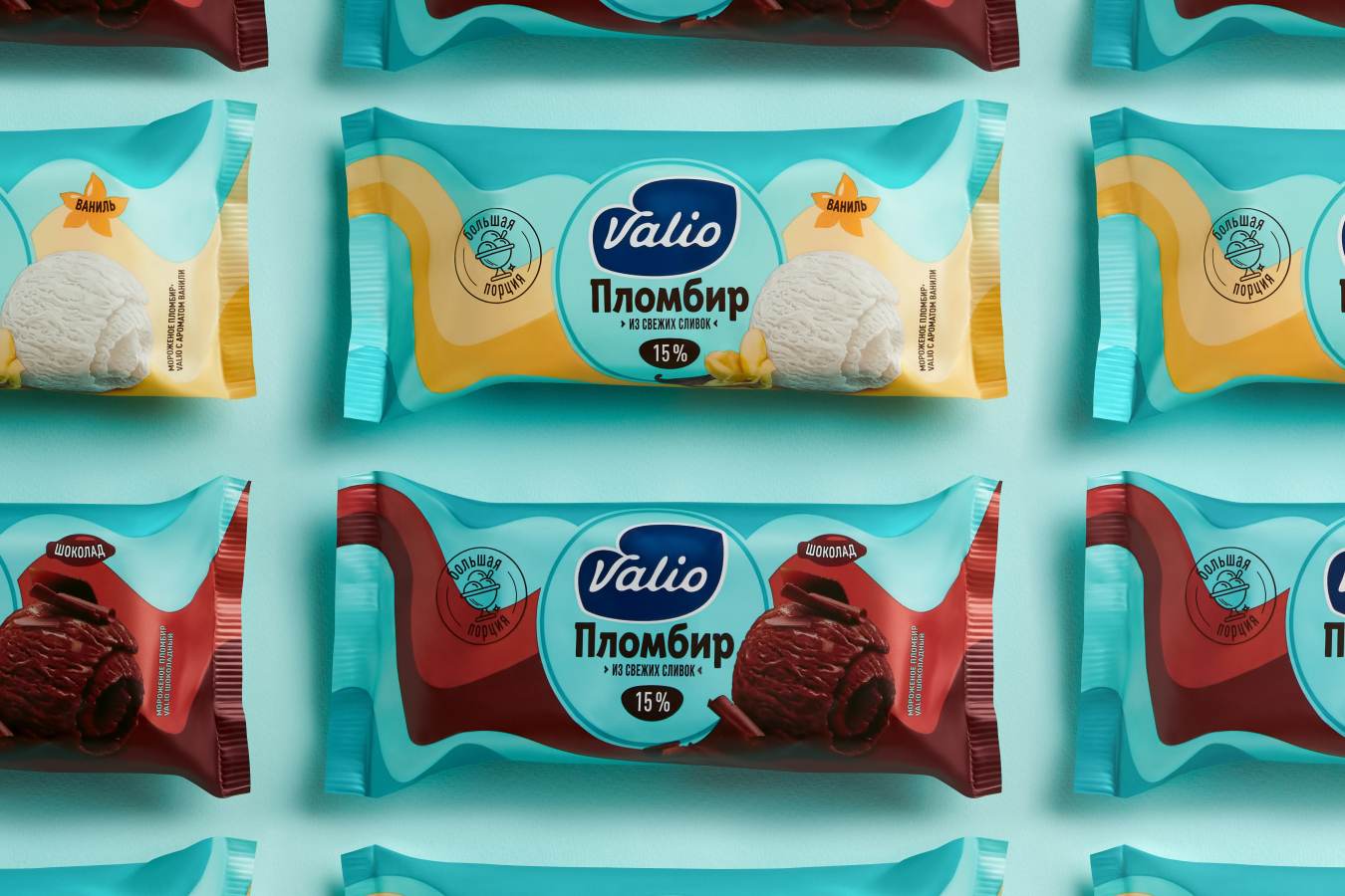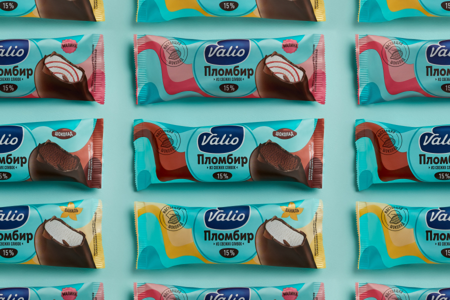 Valio уже был представлен в категории мороженого, но в более узком сегменте — сливочного мороженого без лактозы в ведерках. Перед нами стояла задача выйти в более привычный потребителям сегмент порционного лакомства. Это очень насыщенная локальными игроками категория и основная цель, которую мы ставили перед собой и агентством, — выделиться из общей массы и создать визуальный бренд-блок на полочном пространстве.