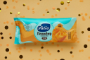 Одной из наших задач было внедрение фудзоны, которая бы вызывала желание попробовать этот продукт. Мы решили расположить фуд так, чтобы он находился на полосках своего цвета и как будто «растягивался» на всю упаковку. Это упрощает коммуникацию с покупателем — ему становится проще увидеть и издалека понять, с каким вкусом это мороженое.