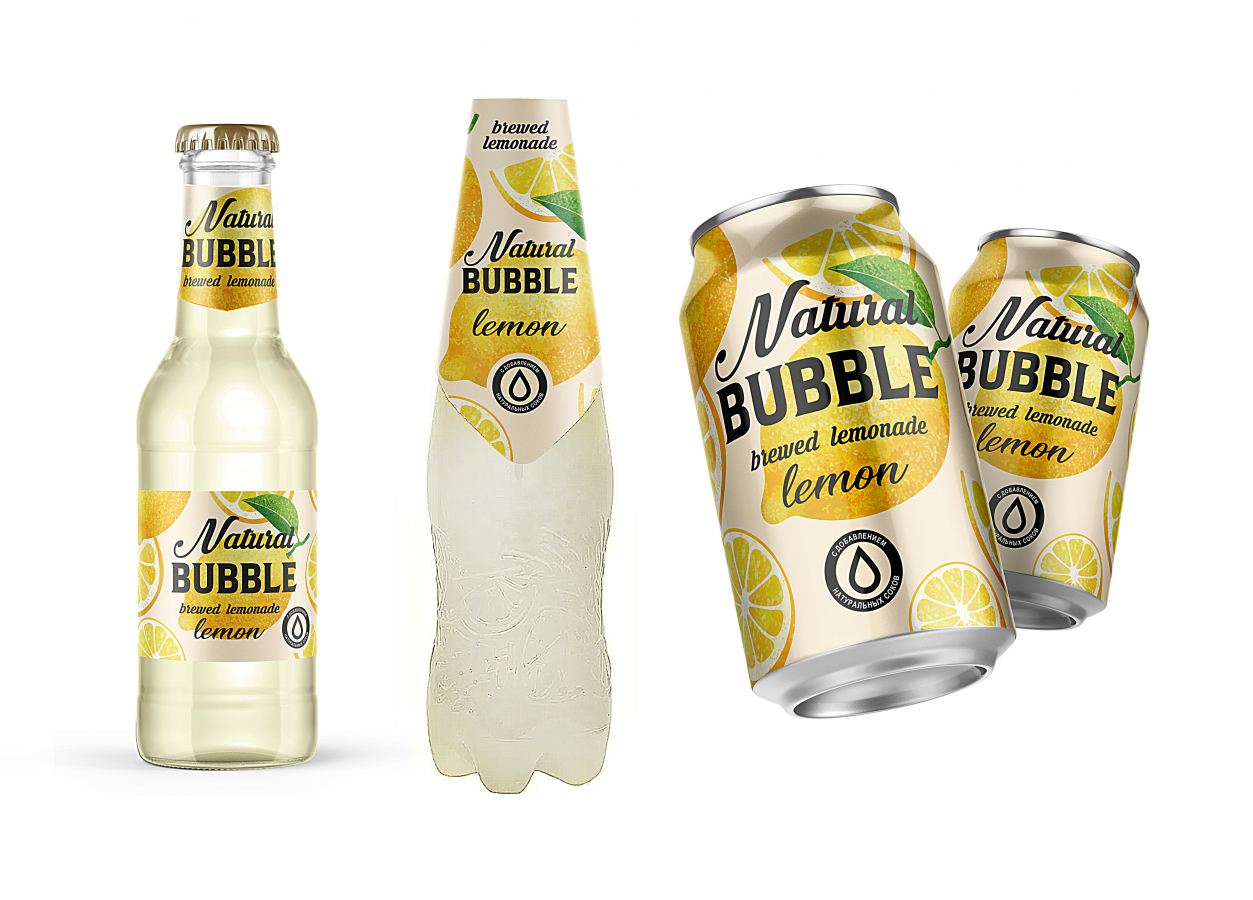 Для Natural Bubble — смешанный стиль крафтового и природного дизайна. А для Soda-Boom агентство использовало свободную стилистику, куда и внедрило персонажа лимончика.
