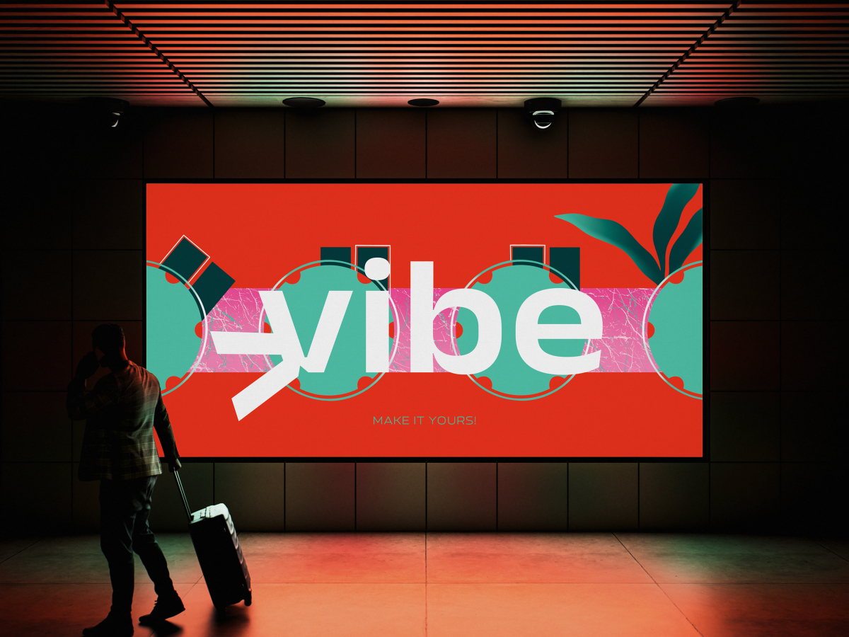Название VIBE отсылает к понятию «свой вайб» — атмосфере, энергии и чувству принадлежности. Команда проработала несколько вариантов, но в итоге нейминг возник в процессе обсуждений с клиентом. Он задал тон всей коммуникации: легкий, с иронией, без избыточного пафоса. Слоган Make it yours! — призыв сделать пространство своим.