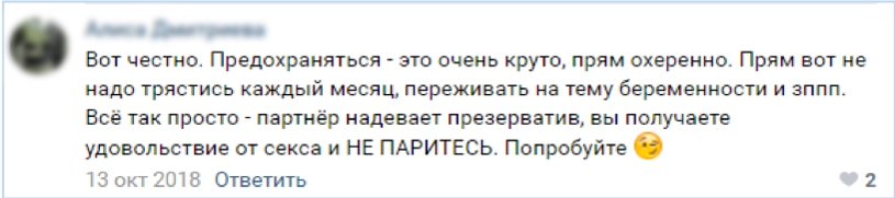 Благодаря этому подходу Durex удалось построить популярное коммьюнити во «ВКонтакте» (2,9 млн. чел.) с одним из самых высоких Engagement Rate в категории (0,84−3,05%) при минимальном платном продвижении, а также закрепить за собой статус амбассадора защищенного секса и компетентного источника информации о сексе.