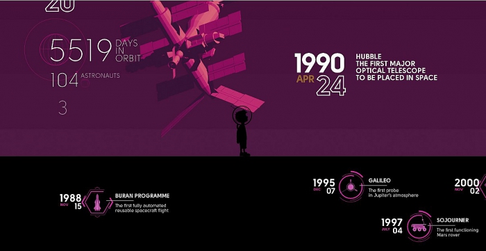 Авторы работы постарались показать наиболее важные события в истории освоения космоса: первые космические аппараты, полеты к планетам и посадки на космические объекты. "Наш арт-проект мы посвящаем всем первопроходцам и исследователям космоса. Мы считаем, что достижения в космонавтике принадлежат всему человечеству. Мы верим, что исследования космоса - значительный этап в развитии нашей цивилизации".
