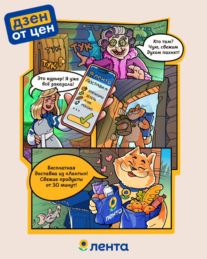 Для нас «Дзен от Цен» — это не просто кампания, а новое ценовое позиционирование «Ленты», которое отражает стабильность и предсказуемость наших цен. Мы тщательно готовились к запуску проекта, искали форму, которая будет понятна и близка покупателям. Команда FABULA предложила концепцию, основанную на философии дзен и образах русского фольклора: комиксы, оффлайн-арт-объект Кота Уха стали ее частью.